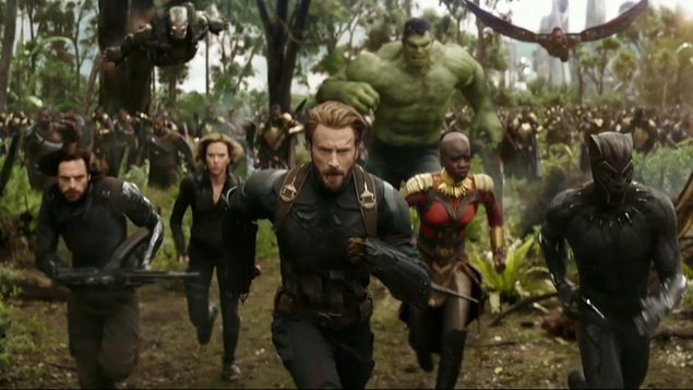 USA, 2018. Hrají: Robert Downey Jr., Chris Evans, Chris Hemsworth, Mark Ruffalo, Scarlett Johansson, Jeremy Renner, Elizabeth Olsen, Paul Bettany, Sebastian Stan, Tom Holland, Samuel L. Jackson, Cobie Smulders, Josh Brolin, Tom Hiddleston, Benedict Cumberbatch, Chris Pratt, Benedict Wong, Zoe Saldana, Vin Diesel, Bradley Cooper, Benicio Del Toro. Režie: Anthony Russo, Joe Russo.