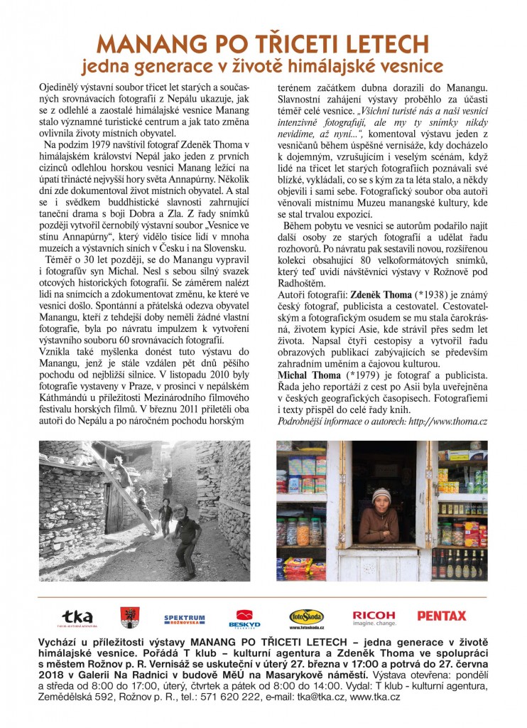 Ojedinělý výstavní soubor třicet let starých a současných srovnávacích fotografií z Nepálu ukazuje, jak se z odlehlé a zaostalé himálajské vesnice Manang stalo významné turistické centrum a jak tato změna ovlivnila životy místních obyvatel.