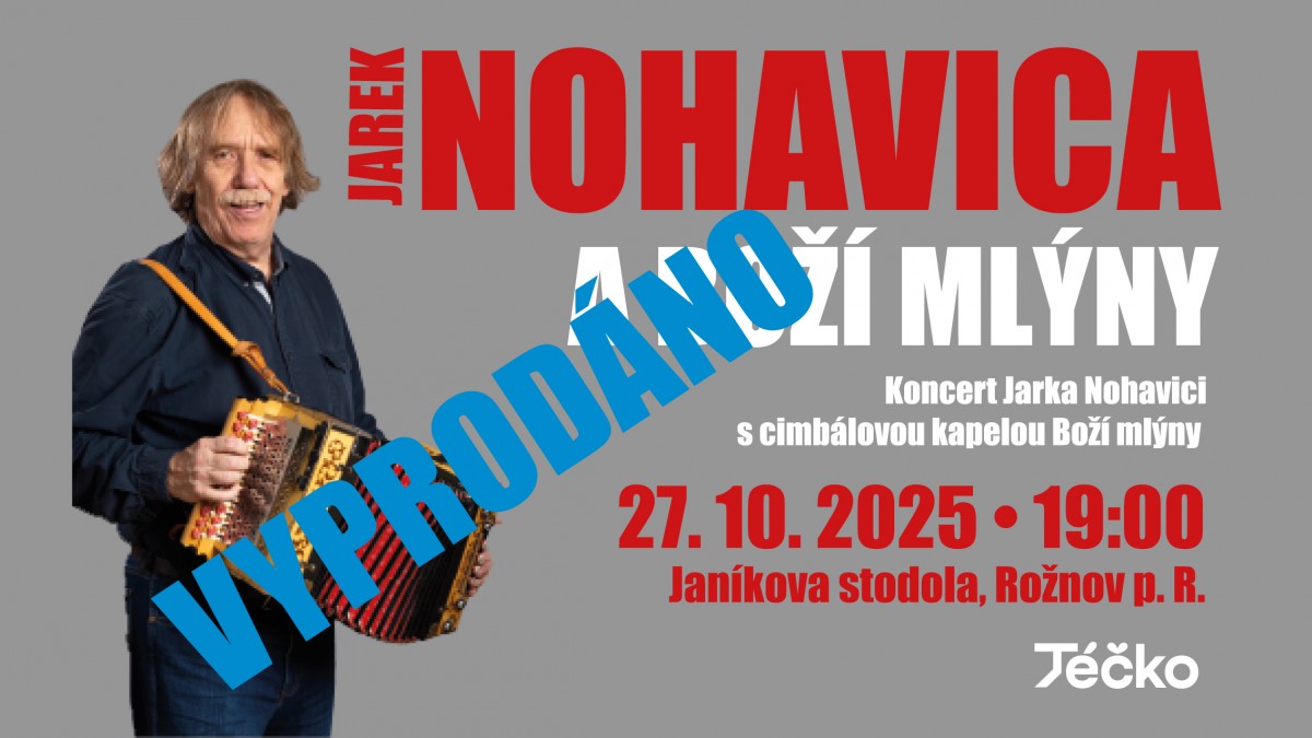 Koncert Jarka Nohavici s cimbálovou kapelou Boží mlýny. Během večera budete mít možnost poslechnout si písničky z divadelní inscenace Moravského divadla Boží mlýny v aranžích Filipa Tailora a jeho kapely, ale i další písně Jarka Nohavici zaranžované speciálně pro tuto mimořádnou koncertní příležitost.