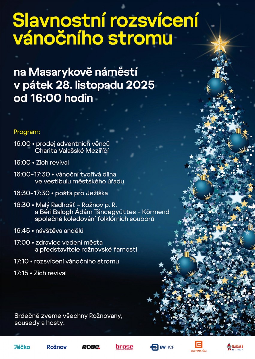 Po zdravici od vedení našeho města se rozsvítí nejen vánoční strom, ale celá vánoční výzdoba náměstí. Krásné odpoledne a podvečer ukončí opět kapela Karel Zich revival band.