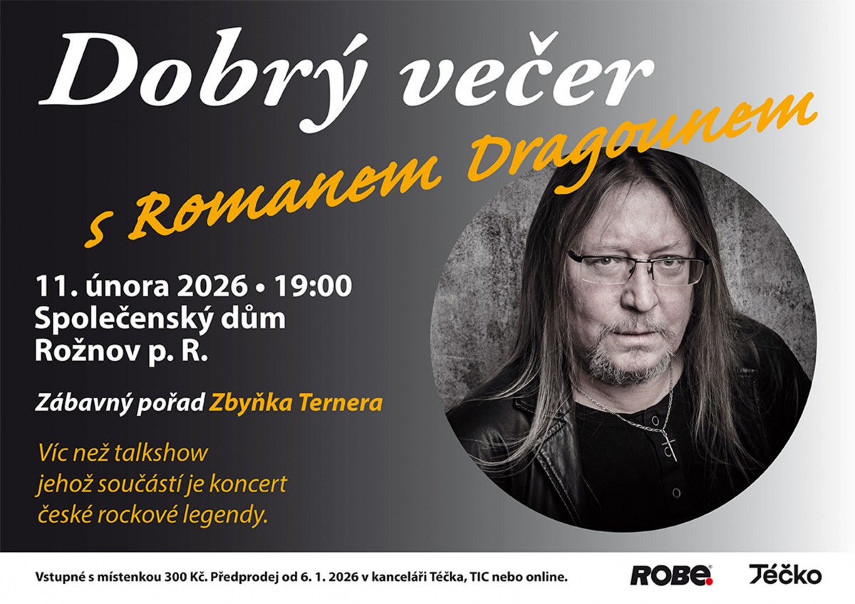 Vstupné s místenkou 300 Kč. Předprodej od 6. 1. od 8:30 v kanceláři Téčka, TIC nebo online.